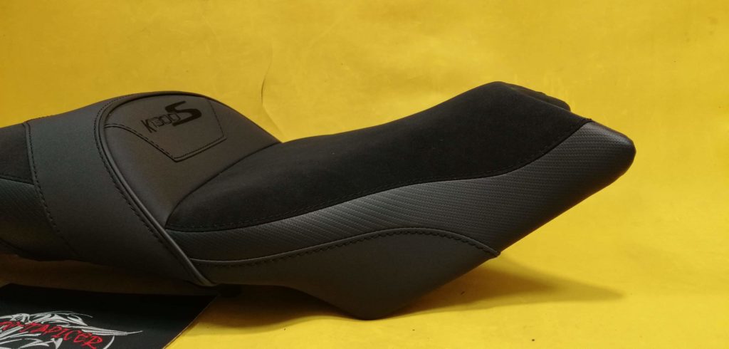 Kanapa rozbudowana i wyprofilowana do turystyki z wkładami żelowymi dla komfortu. Poszycie wykonane z syntetyków motocyklowych na siedziskach antypoślizg. Haft komputerowy.