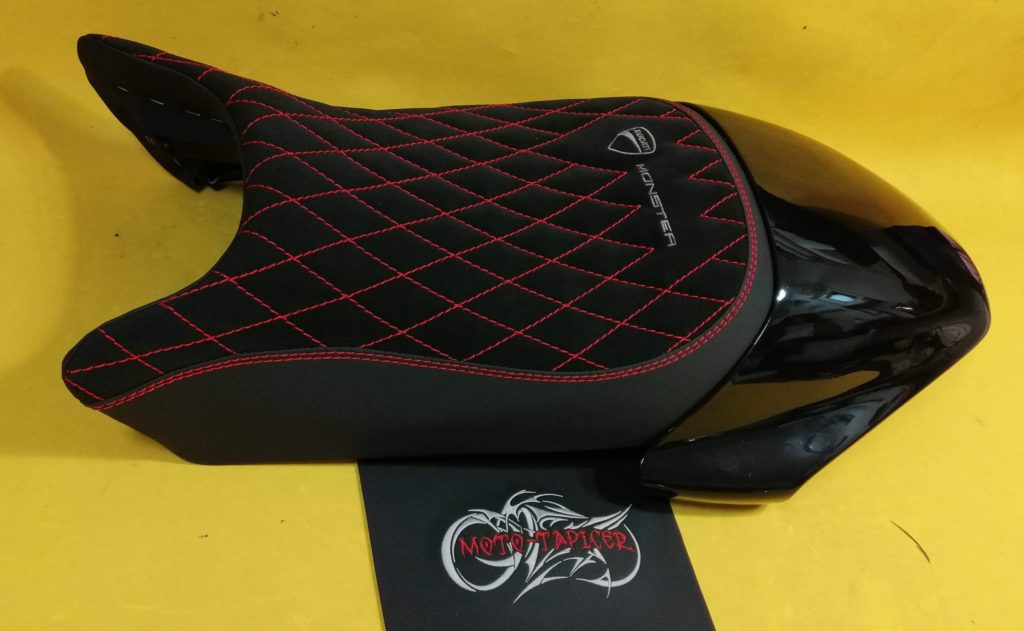 Kanapy rozbudowane dopasowane oraz wyprofilowane. Wkład żelowy w siedzisku kierowcy. Zdobione przeszyciami karo oraz haftem komputerowym.