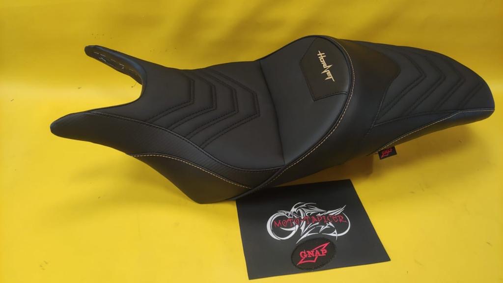 Kanapy wyprofilowane i dopasowane do wagi i wzrostu, wyposażone we wkład żelowy. Stylistyka i kolorystyka dostosowana do motocykla.