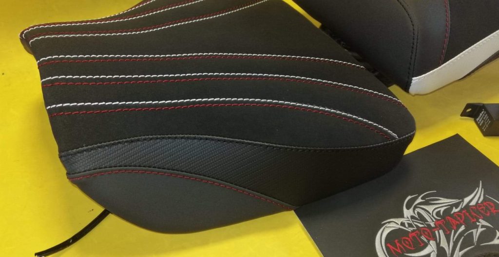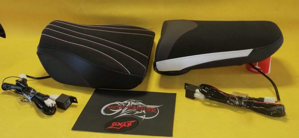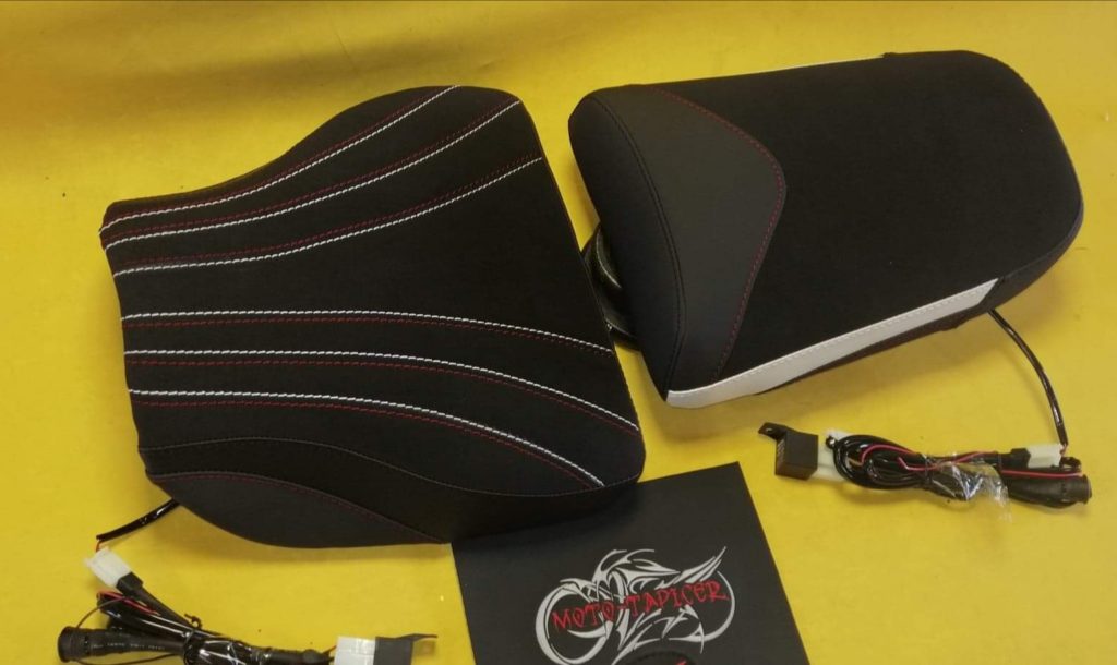 Kanapy rozbudowane, dopasowane indywidualnie, wkłady żelowe w siedziskach idealnie poprawiające komfort, dodatkowo wyposażone w maty grzewcze. Poszycie wykonane z wysokiej jakości syntetyków motocyklowych, siedziska w antypoślizgu, dodatki kolorystyczne oraz przeszycia pod kolor motocykla.