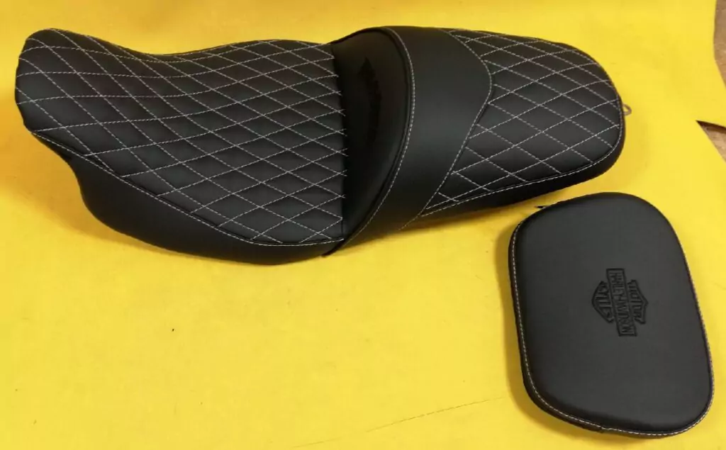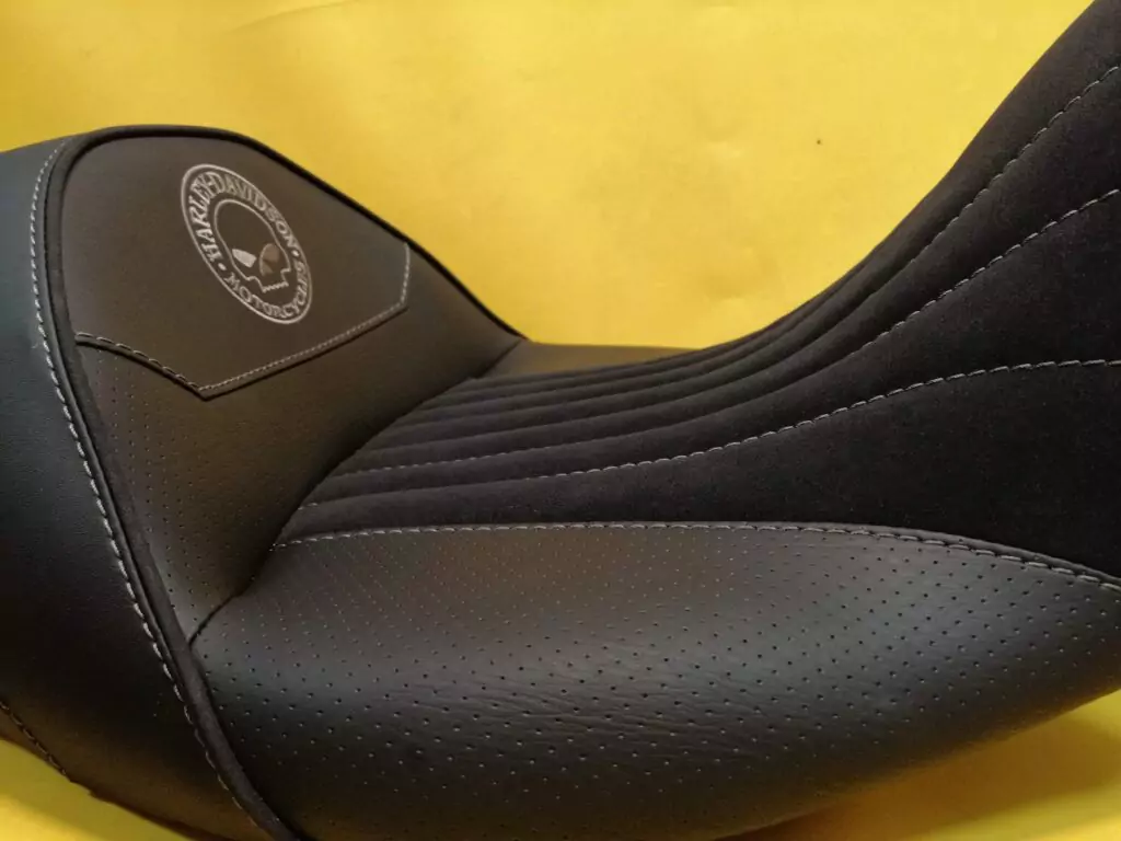 Kanapa motocyklowa do Harley Davidson, rozbudowana i precyzyjnie wyprofilowana, wyposażona w podparcie na lędźwie umieszczone między kierowcą a pasażerem, które znacząco zwiększa komfort jazdy. Poszycie wykonane z wysokiej jakości syntetycznych materiałów motocyklowych o różnorodnych strukturach, z opcją zastosowania antypoślizgowego materiału na siedziskach.