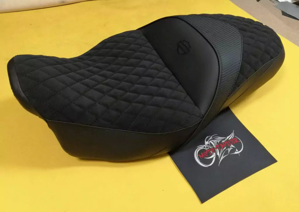 Personalizowany haft komputerowy oraz finezyjne przeszycia, dopasowane kolorystycznie do motocykla, podkreślają unikalny styl kanapy. Istnieje również możliwość wyposażenia w wkłady kompozytowe oraz maty grzewcze, które zapewniają maksymalny komfort nawet podczas długich tras i chłodniejszych dni.