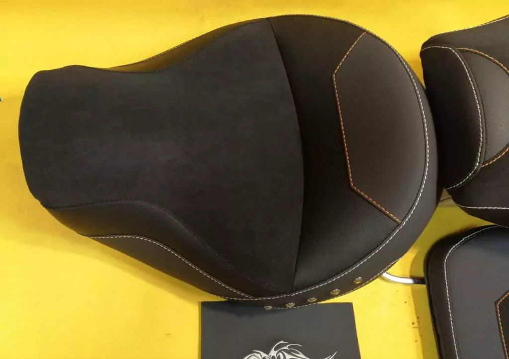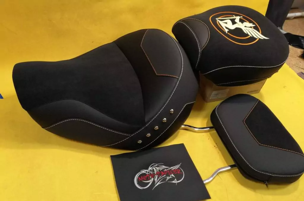 Kanapa motocyklowa do Honda Valkyrie, starannie wyprofilowana i indywidualnie dopasowana do użytkownika, wyposażona we wkład kompozytowy, który znacząco podnosi komfort podczas długich tras. Zdobiona precyzyjnym haftem oraz ozdobnymi ćwiekami, które podkreślają charakter i styl motocykla.