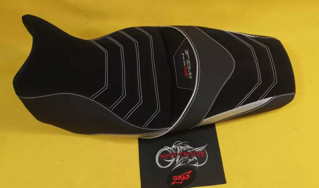 Poszycie wykonane z wysokiej jakości materiałów syntetycznych, a siedziska wyposażone w antypoślizgowe wykończenie, które gwarantuje lepszą stabilność podczas jazdy. Dodatki kolorystyczne są precyzyjnie dopasowane do motocykla, a haft komputerowy oraz podwójne przeszycia podkreślają trwałość i estetykę kanapy.